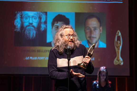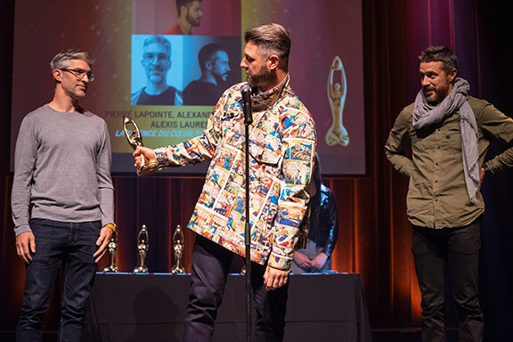 2018 - Gala de l'Industrie - Scripteur de spectacle de l’année : François Bellefeuille, Olivier Thivierge, Simon Cohen pour Le plus fort du monde François Bellefeuille