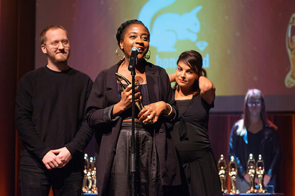2018 - Gala de l'Industrie - Scripteur de spectacle de l'année : François Bellefeuille, Olivier Thivierge et Simon Cohen pour Le plus fort au monde de François Bellefeuille